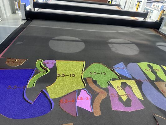 Tailored production ecosystem for cutting sports shoe uppers, athletic mesh, PU & microfiber uppers, safety shoe materials, EVA foam layers, and leather-like textiles.